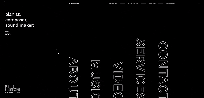 Ví dụ: Paolo Fornasier có một con trỏ tuyệt vời được thiết lập trên danh mục đầu tư trực tuyến của anh ấy. Con trỏ hiển thị các ảnh khác nhau với hoạt ảnh gợn sóng và âm thanh piano khi cuộn qua văn bản được căn chỉnh theo chiều dọc của menu điều hướng.