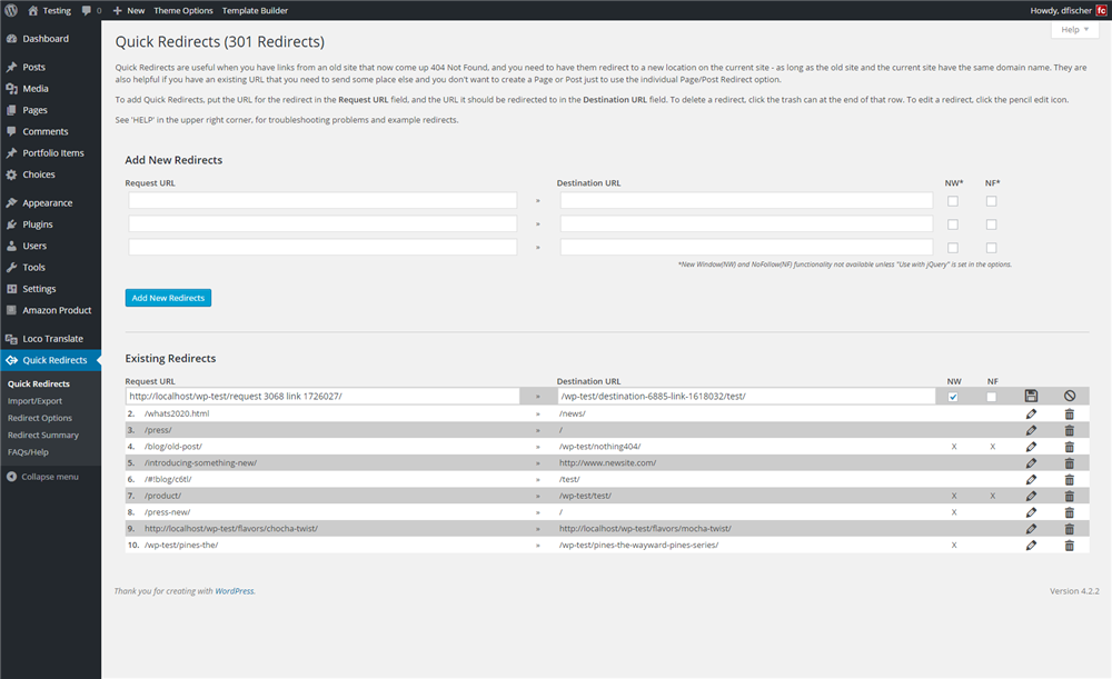 Thay vì mã hóa cố định 301 chuyển hướng vào tài liệu HTACCESS trên trang web WordPress của bạn, bạn có thể quản lý chúng thông qua giao diện người dùng đơn giản của plugin ngay trong trang tổng quan WordPress của mình.